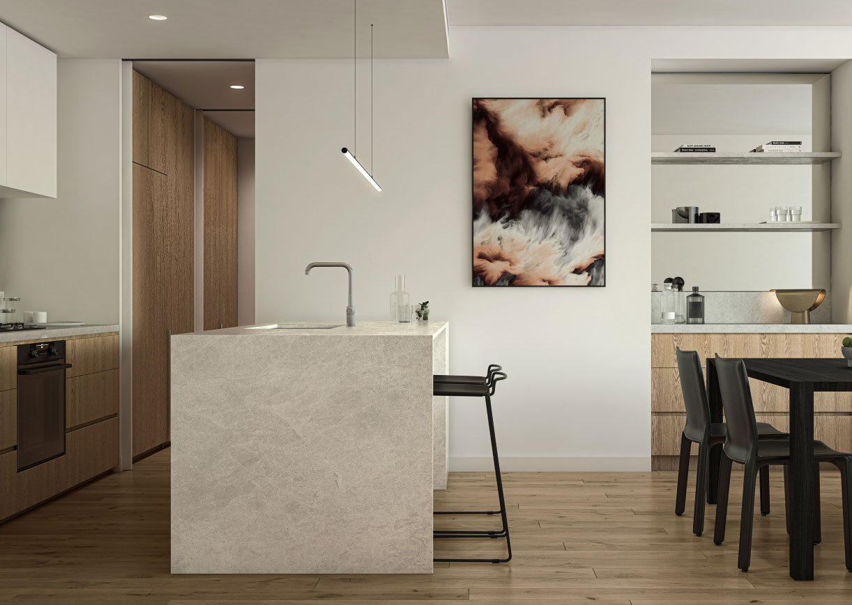 2 BED KITCHEN WITH BAR JOINERY, OPTIONAL UPGRADE – ARTIST IMPRESSION
